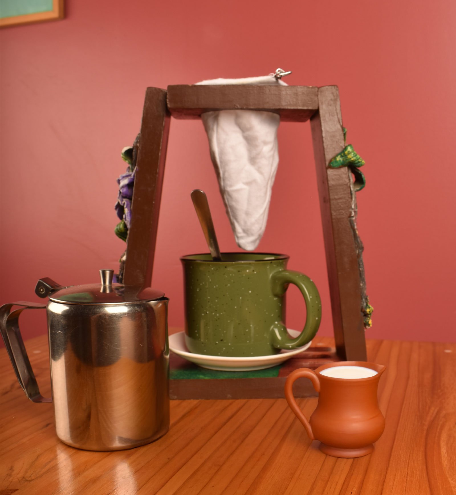 Nuestro café chorreado es un método de filtrado en su mesa, lo preparas a tu gusto. Acompañado de leche caliente. Presentación de 16 oz